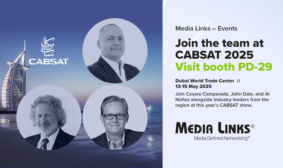 株式会社メディアリンクス(本社:神奈川県川崎市、代表取締役社長:菅原 司、東証スタンダード:6659、以下「メディアリンクス」)はドバイのワールドトレードセンターで5月13日から15日まで開催されるCABSAT2025に初出展致します。ブースでは、放送に求められる高品質のコンテンツ配信における、映像・データ伝送をどのようにIPベースへ移行していくかという業界の課題と、その解決策をご紹介します。(Shk Saeed Hall 1・スタンドPD29)