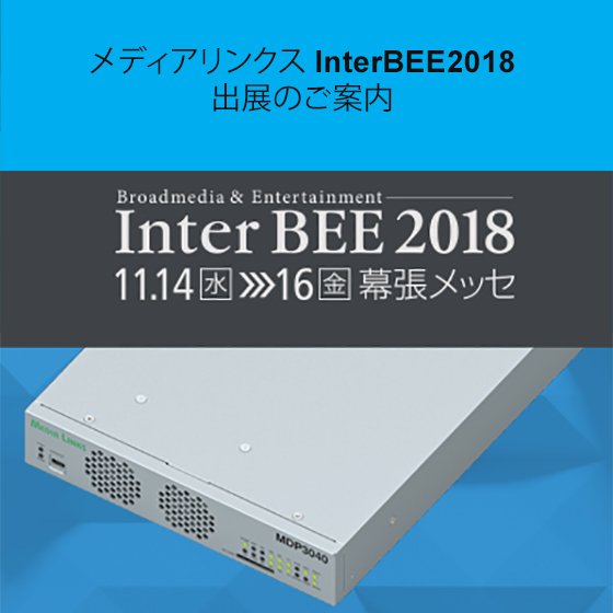 株式会社メディアリンクス(本社:神奈川県川崎市、代表取締役社長 ジョン・デイル 東証ジャスダック6659 以下メディアリンクス)は、2018年11月14日から16日に幕張メッセで開催される「InterBEE 2018(第54回)2018年国際放送機器展」に出展します。(ホール3 /3309)